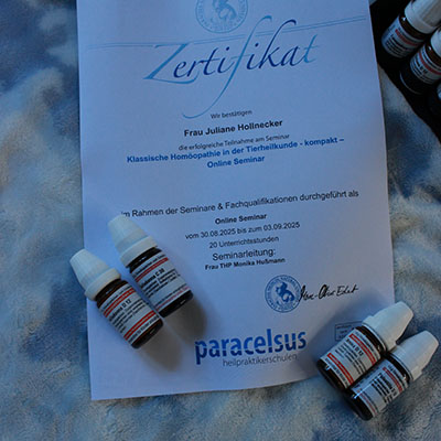 Von März 2023 bis Dezember 2024 habe ich meine Ausbildung zur Tierheilpraktikerin absolviert.